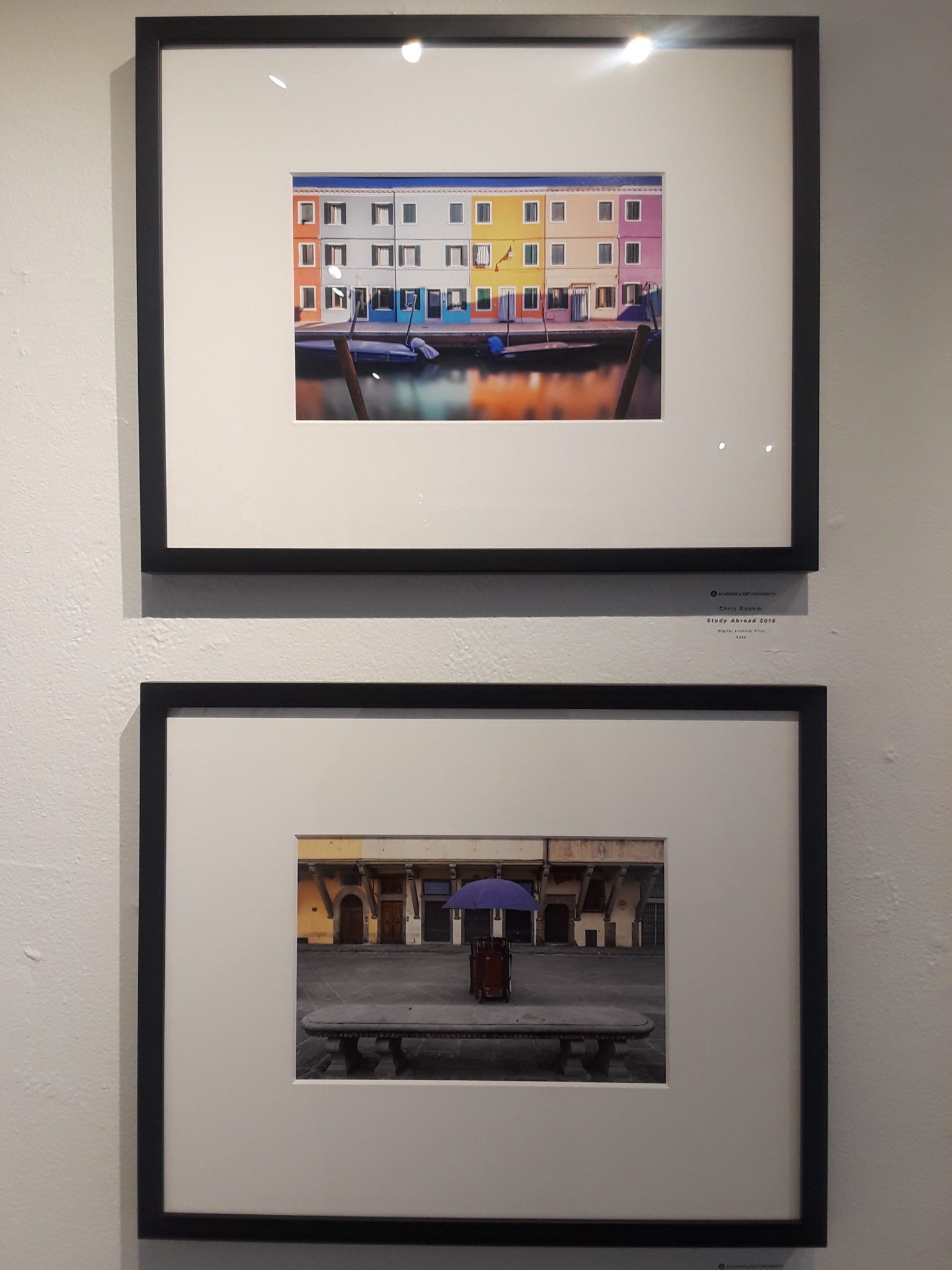 This year’s Study Abroad exhibit is hosted at Academy of Art’s Gallery in Sutter. A small picture of the 2018 batch welcomes you as enter through the door. Just above that, a large photo depicting the Italian countryside in long exposure hangs prominently by the foyer staircase.