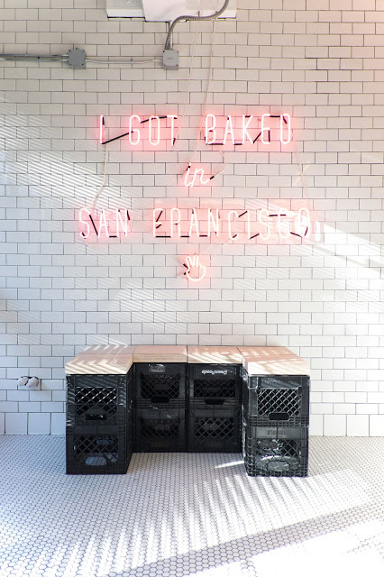 Take a look at the very popular Mr Holmes Bakehouse in San Francisco’s Tenderloin Neighborhood. The Identity, Interiors & Packaging was designed by Co-Owner Aron Tzimas. “For the baked goods box, the idea was simple: make everyone who bought or received baked goods from Mr Holmes feel special. We wanted our packaging to represent the quality that was inside. Too often you see bakeries just stamp a plain craft paper box, and even though we know this was the (much) more expensive option, we knew that we wanted it to feel like you were receiving a birthday present.”
